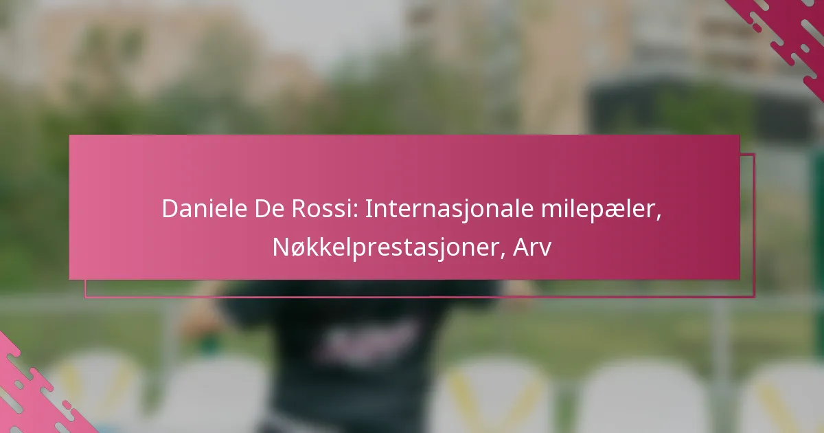 Daniele De Rossi er en feiret skikkelse i italiensk fotball, kjent for sine omfattende bidrag til landslaget. Med tallrike landskamper og avgjørende prestasjoner i store turneringer har han etablert seg som en av Italias beste midtbanespillere, og etterlatt seg en dyp arv som fortsatt påvirker sporten. Key sections in the article: Toggle Hva er Daniele De Rossis internasjonale milepæler? Antall landskamper og mål for det italienske landslaget Deltakelse i FIFA verdensmesterskap Deltakelse i UEFA europamesterskap Rekorder og prestasjoner under internasjonal…